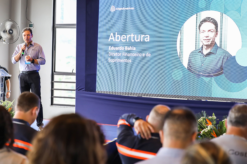 Eduardo Bahia, diretor Financeiro e de Suprimentos da Anglo American, destaca ações de empresas parceiras durante cerimônia do “Prêmio Fornecedores de Destaque”.