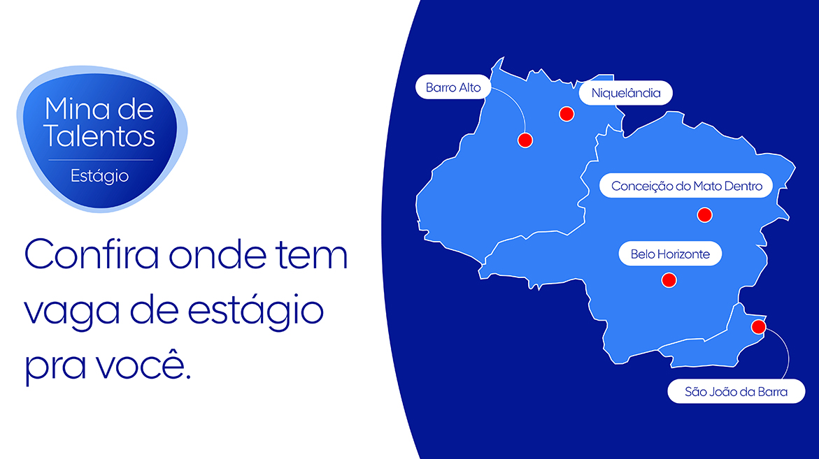 Temos vagas para: Belo Horizonte (MG), Conceição do Mato Dentro (MG), São João da Barra (RJ), Barro Alto (GO) e Niquelândia (GO).