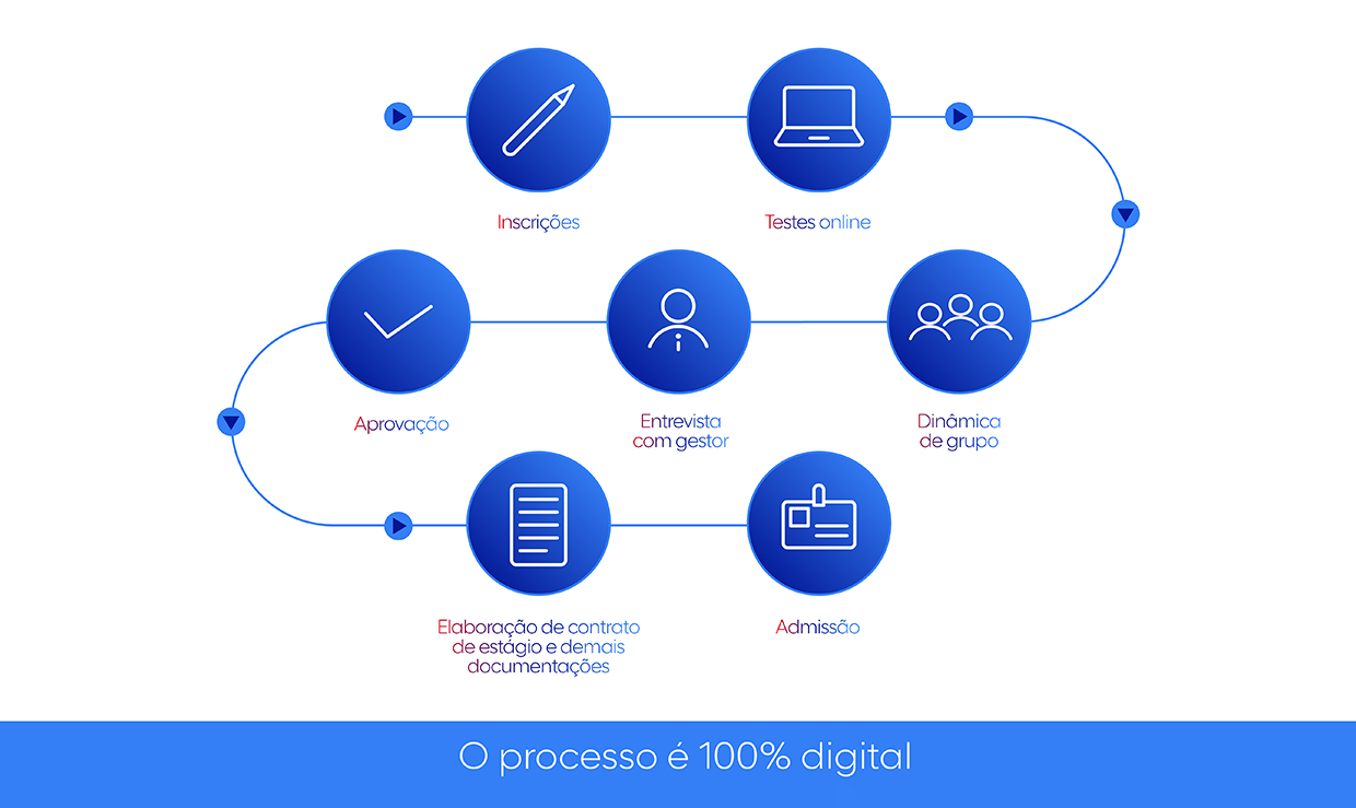 Sim, o processo seletivo será conduzido todo de forma online. Você receberá as comunicações e informações sobre as etapas através do seu e-mail de inscrição e do WhatsApp.